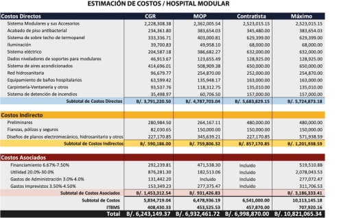 En esta fase de evaluación documental, la Contraloría verificó los costos directos, indirectos y asociados al recinto hospitalario estimando su valor en B/.6 millones 243 mil 149 con 37 centénsimos.